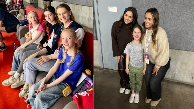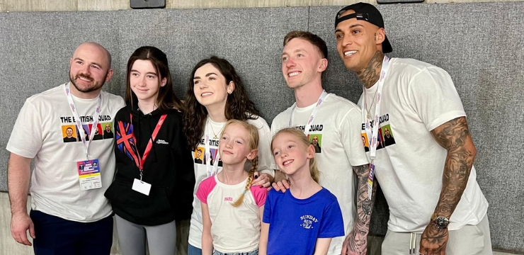 Bryony Page, Jessica and Jennifer Gadirova meeting our special guests.